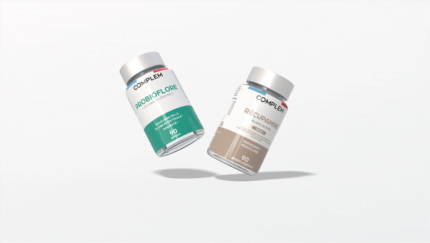 Le Pack Confort Digestif COMPLEM réunit deux compléments complémentaires : Probioflore, une formule de 10 milliards de ferments lactiques pour soutenir l’équilibre du microbiote intestinal, et Récupamine, une synergie d’acides aminés (glycine, glutamine) associée à la vitamine D et au magnésium.